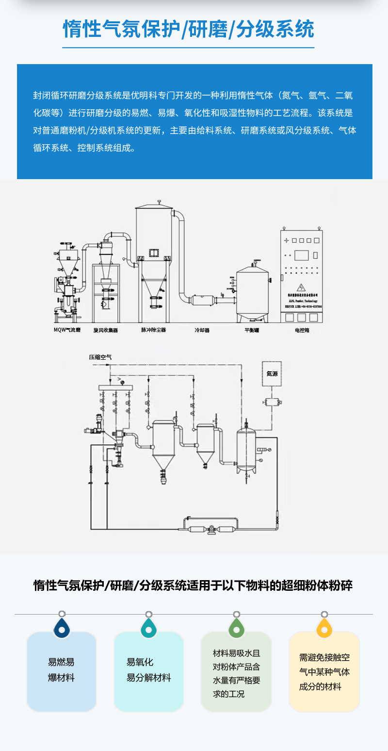 湖南某锂电材料公司:碳酸锂气流磨粉碎生产线-MQW40气流磨
